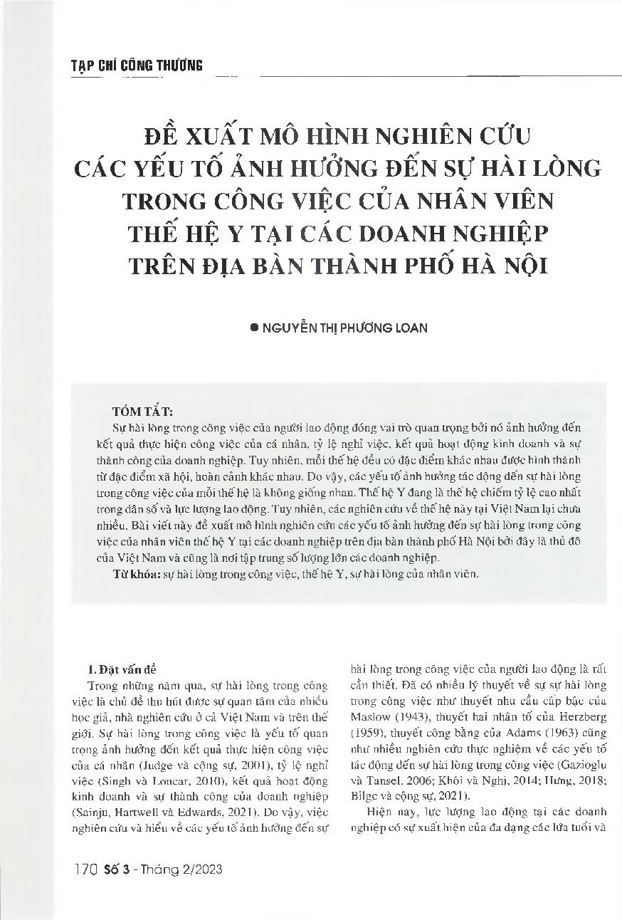 Đề xuất mô hình nghiên cứu các yếu tố ảnh hưởng đến sự hài lòng trong công việc của nhân viên thế hệ Y tại các doanh nghiệp trên địa bàn thành phố Hà Nội = A research model exploring the factors affecting the job satisfaction of Generation Y employees wor