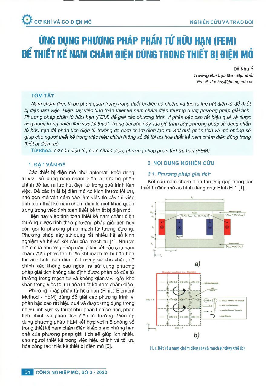 Ứng dụng phương pháp phần tử hữu hạn (FEM) để thiết kế nam châm điện dùng trong thiết bị điện mỏ = Application of the finite element method to design electromagnet used in mining electrical equipments