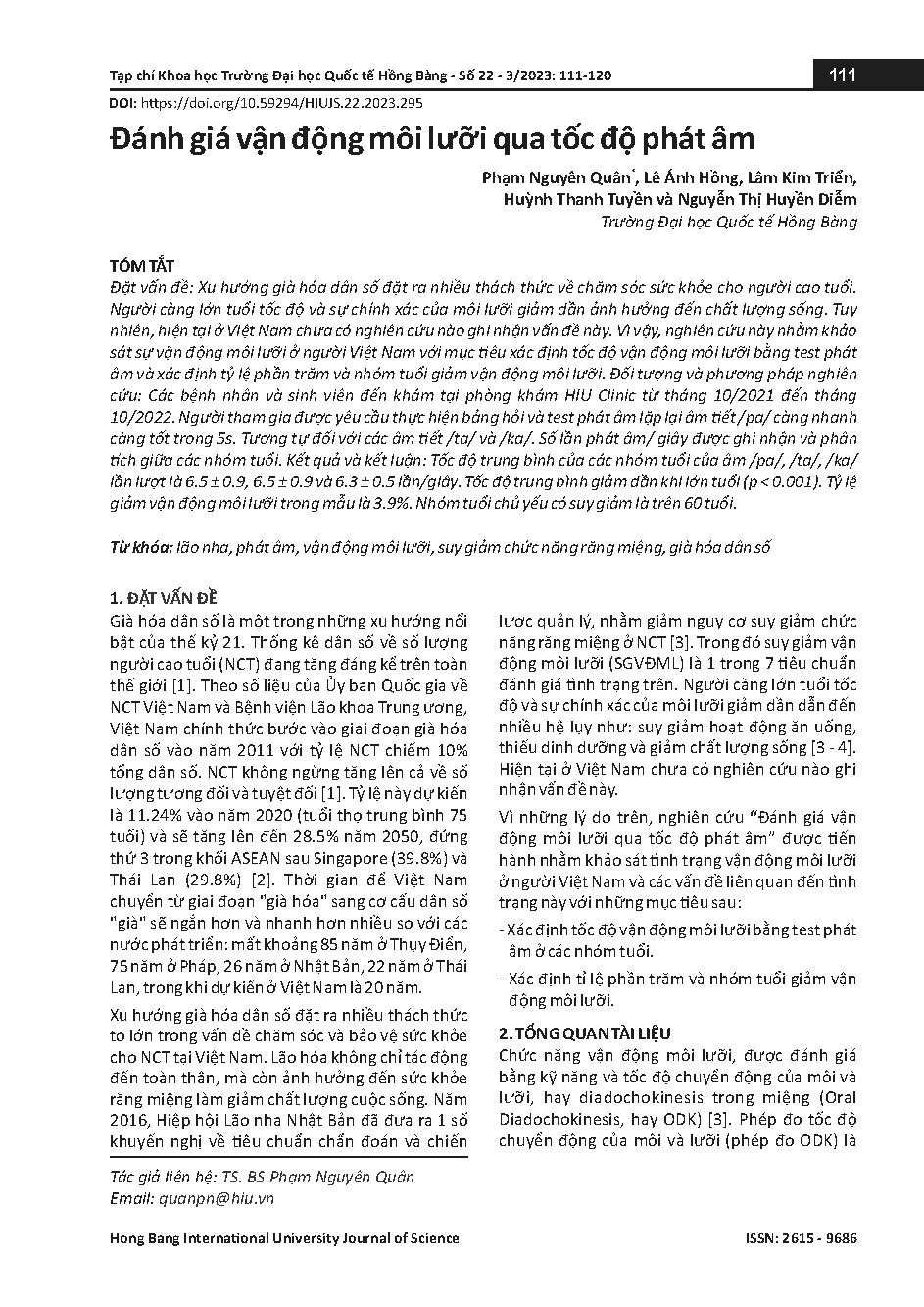 Đánh giá vận động môi lưỡi qua tốc độ phát âm
