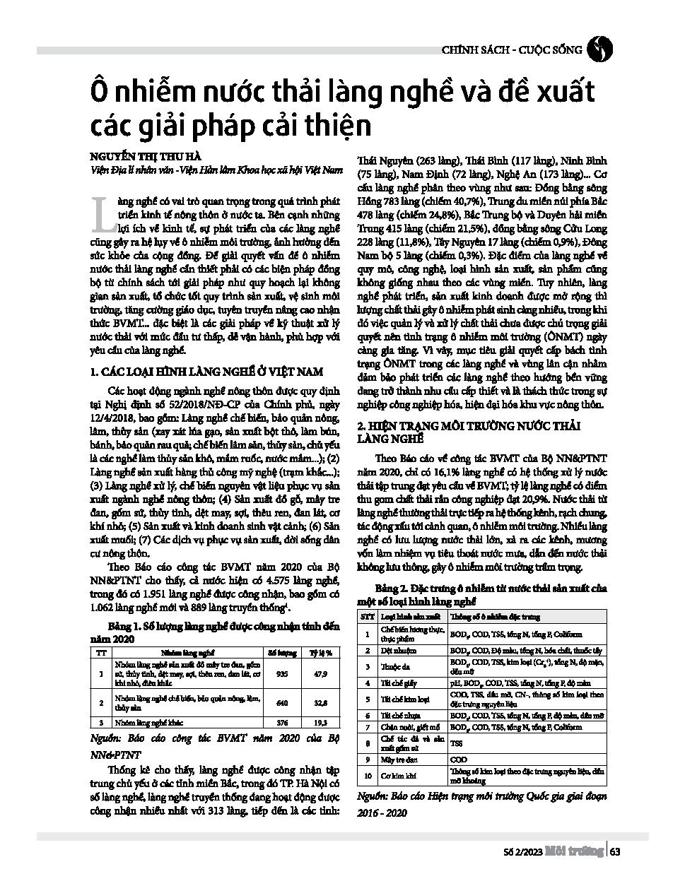 Ô nhiễm nước thải làng nghề và đề xuất các giải pháp cải thiện