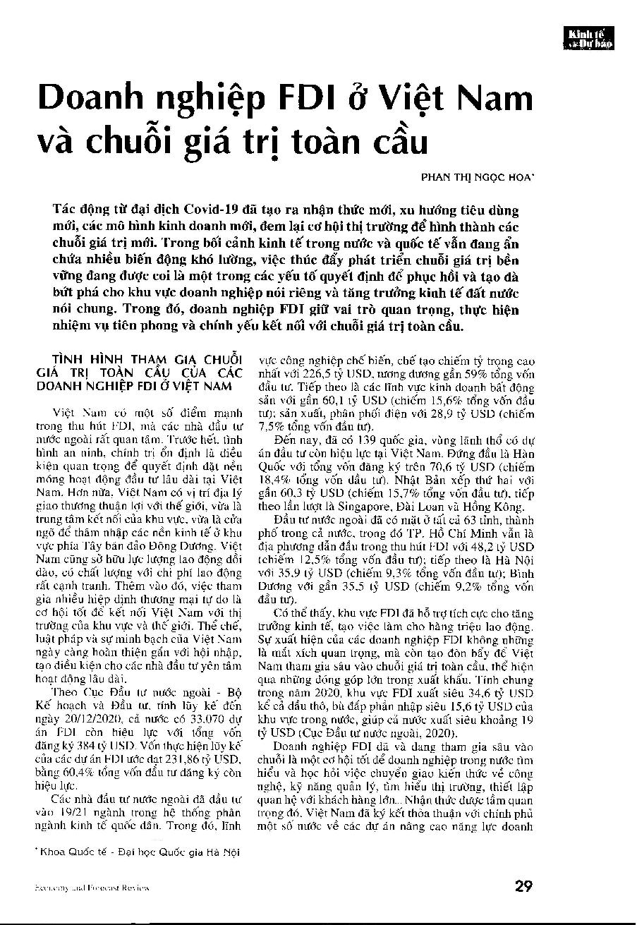 Doanh nghiệp FDI ở Việt Nam và chuỗi giá trị toàn cầu