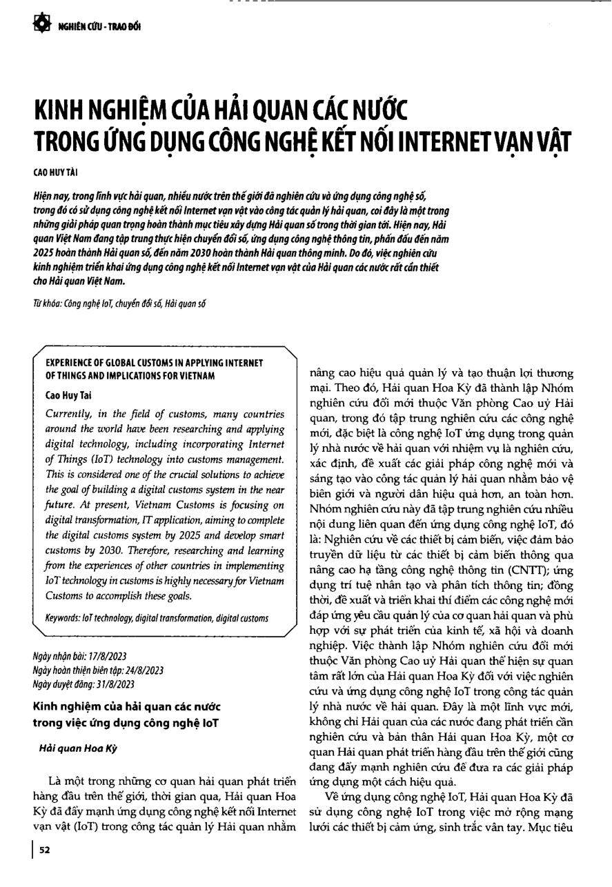 Kinh nghiệm của Hải quan các nước trong ứng dụng công nghệ kết nối Internet vạn vật