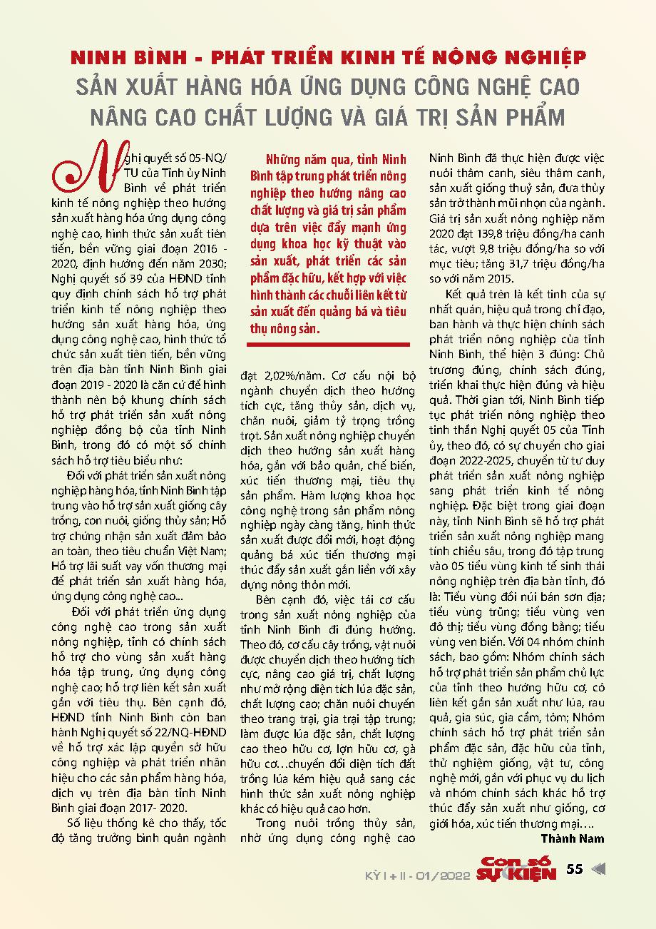 Ninh Bình - phát triển kinh tế nông nghiệp sản xuất hàng hóa ứng dụng công nghệ cao nâng cao chất lượng và giá trị sản phẩm