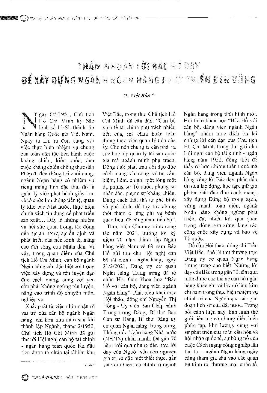 Thấm nhuần lời Bác Hồ dạy để xây dựng ngành Ngân hàng phát triển bền vững