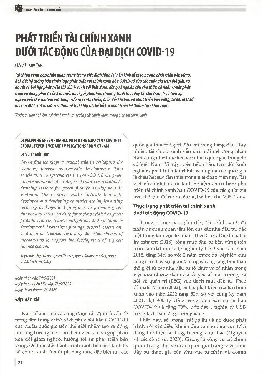 Phát triển tài chính xanh dưới tác động của đại dịch COVID-19