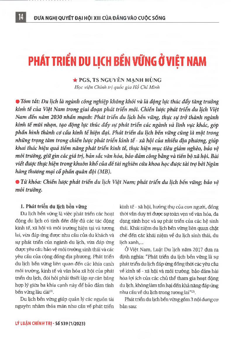 Phát triển du lịch bền vững ở Việt Nam = Development of sustainable tourism in Vietnam