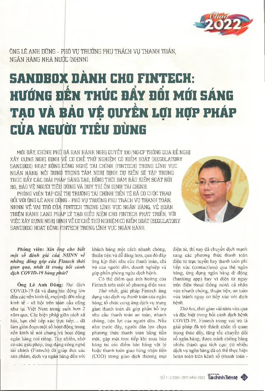 Sandbox dành cho fintech: hướng đến thúc đầy đổi mới sáng tạo và bảo vệ quyền lợi hợp pháp cúa người tiêu dùng