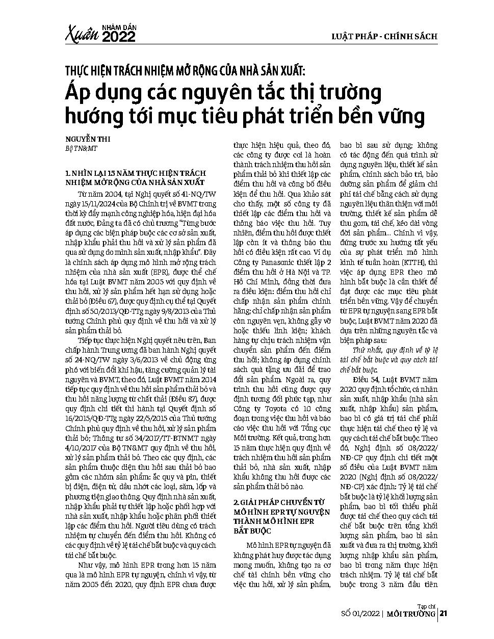 Áp dụng các nguyên tắc thị trường hướng tới mục tiêu phát triển bền vững