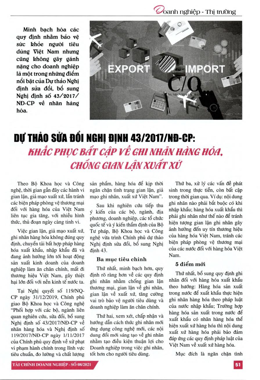 Dự thảo sửa đổi nghị định 43/2017/NĐ-CP: khắc phục bất cập về ghi nhãn hàng hóa, chống gian lận xuất xứ