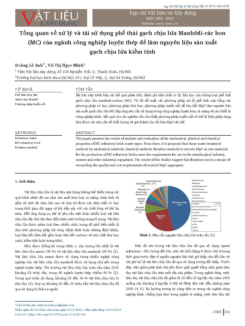 Tổng quan về xử lý và tái sử dụng phế thải gạch chịu lửa Manhêdi-các bon (MC) của ngành công nghiệp luyện thép để làm nguyên liệu sản xuất gạch chịu lửa kiềm tính