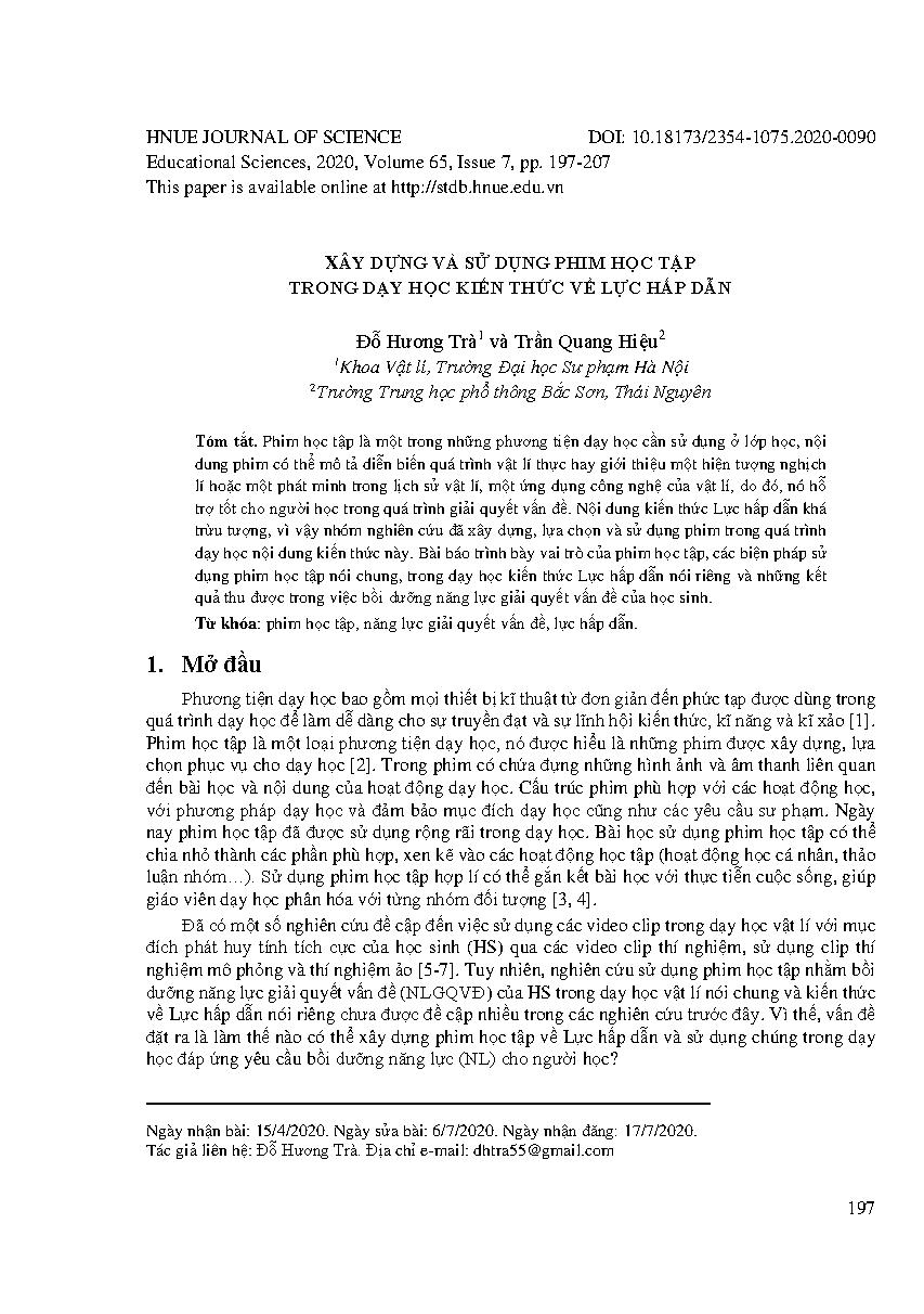 Xây dựng và sử dụng phim học tập trong dạy học kiến thức về lực hấp dẫn = Building and using learning films in teaching knowledge of Gravity