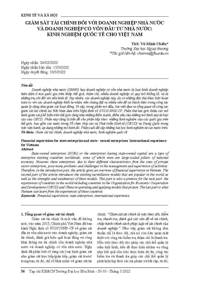 Giám sát tài chính đối với doanh nghiệp nhà nước và doanh nghiệp có vốn đầu tư nhà nước: kinh nghiệm quốc tế cho Việt Nam = Financial supervision for state enterprise and state - owned enterprises: International experience for Vietnam