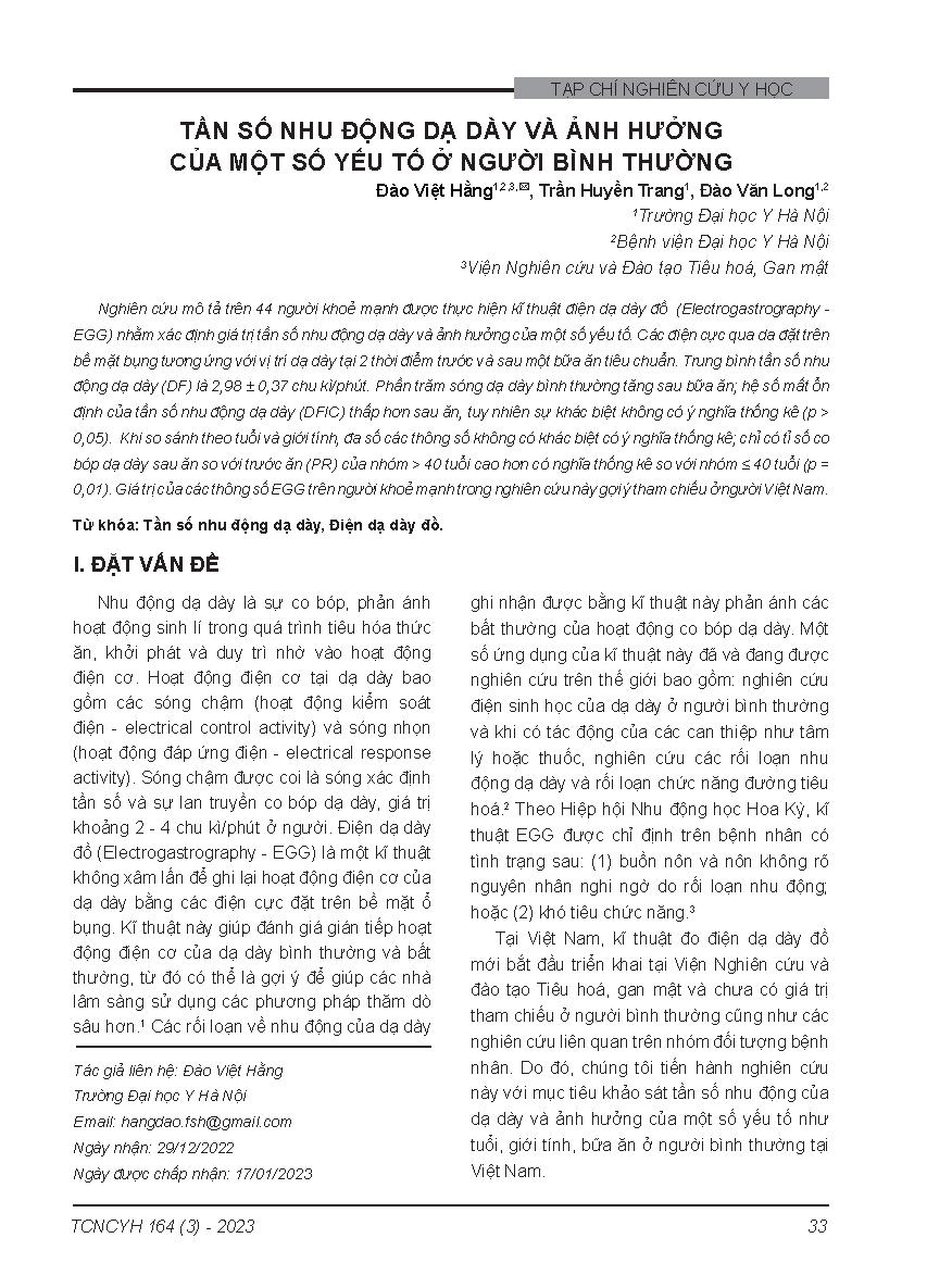 Tần số nhu động dạ dày và ảnh hưởng của một số yếu tố ở người bình thường