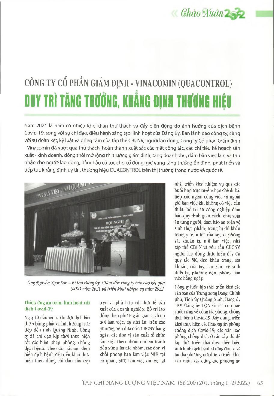 Công ty Cổ phần Giám định - Vinacomin (QUACONTROL) duy trì tăng trưởng, khẳng định thương hiệu
