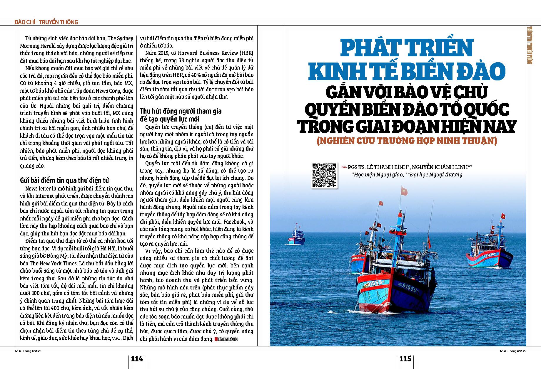 Phát triển kinh tế biển đảo gắn với bảo vệ chủ quyền biển đảo tổ quốc trong giai đoạn hiện nay (Nghiên cứu trường hợp Ninh Thuận)