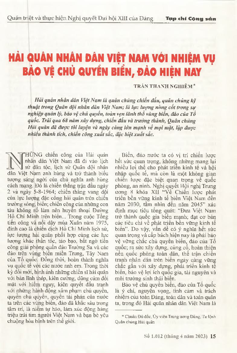 Hải quân nhân dân Việt Nam với nhiệm vụ bảo vệ chủ quyền biển, đảo hiện nay