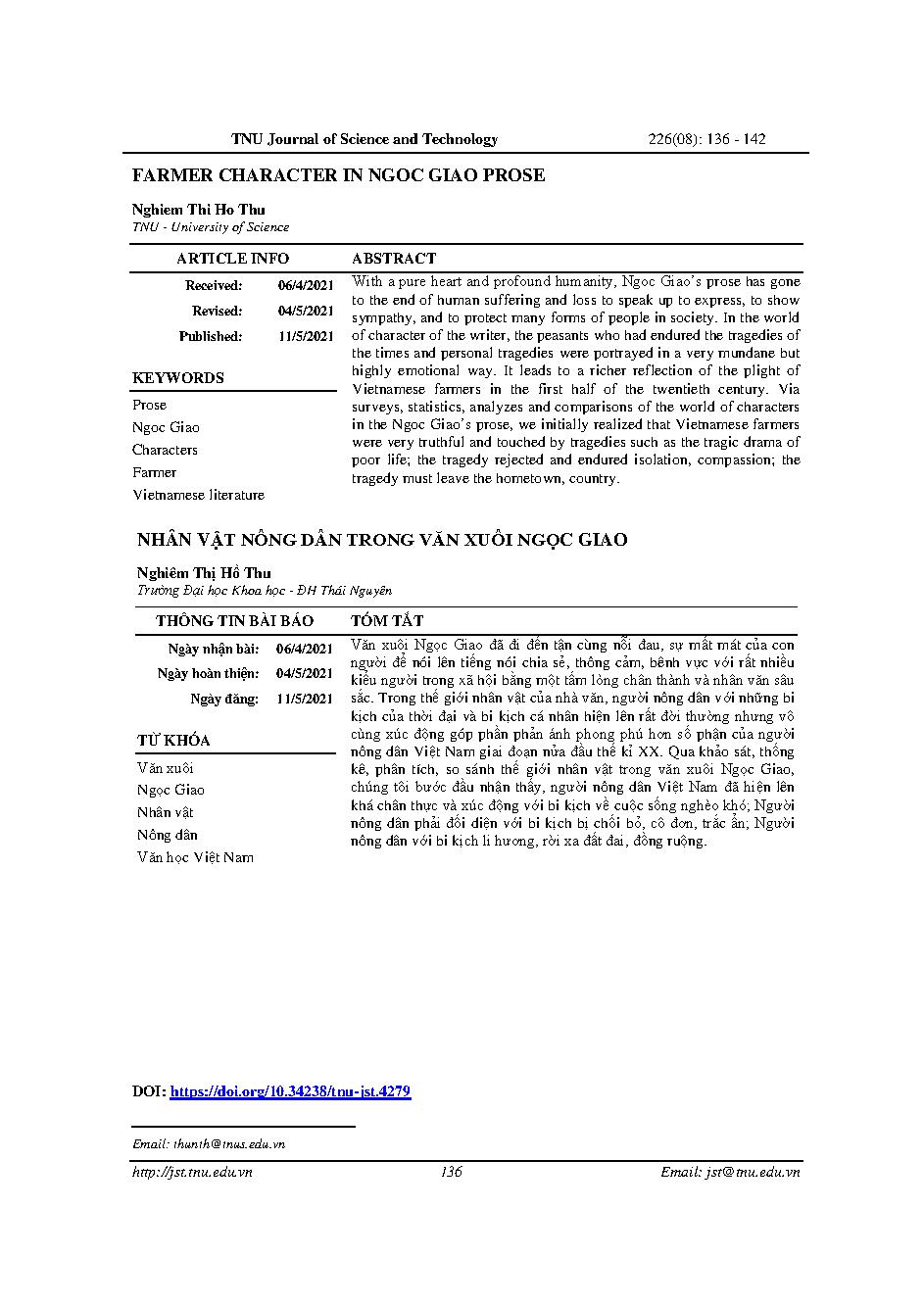 Nhân vật nông dân trong văn xuôi Ngọc Giao = Farmer character in ngoc giao prose