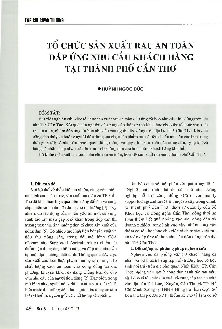 Tổ chức sản xuất rau an toàn đáp ứng nhu cầu khách hàng tại thành phố Cần Thơ