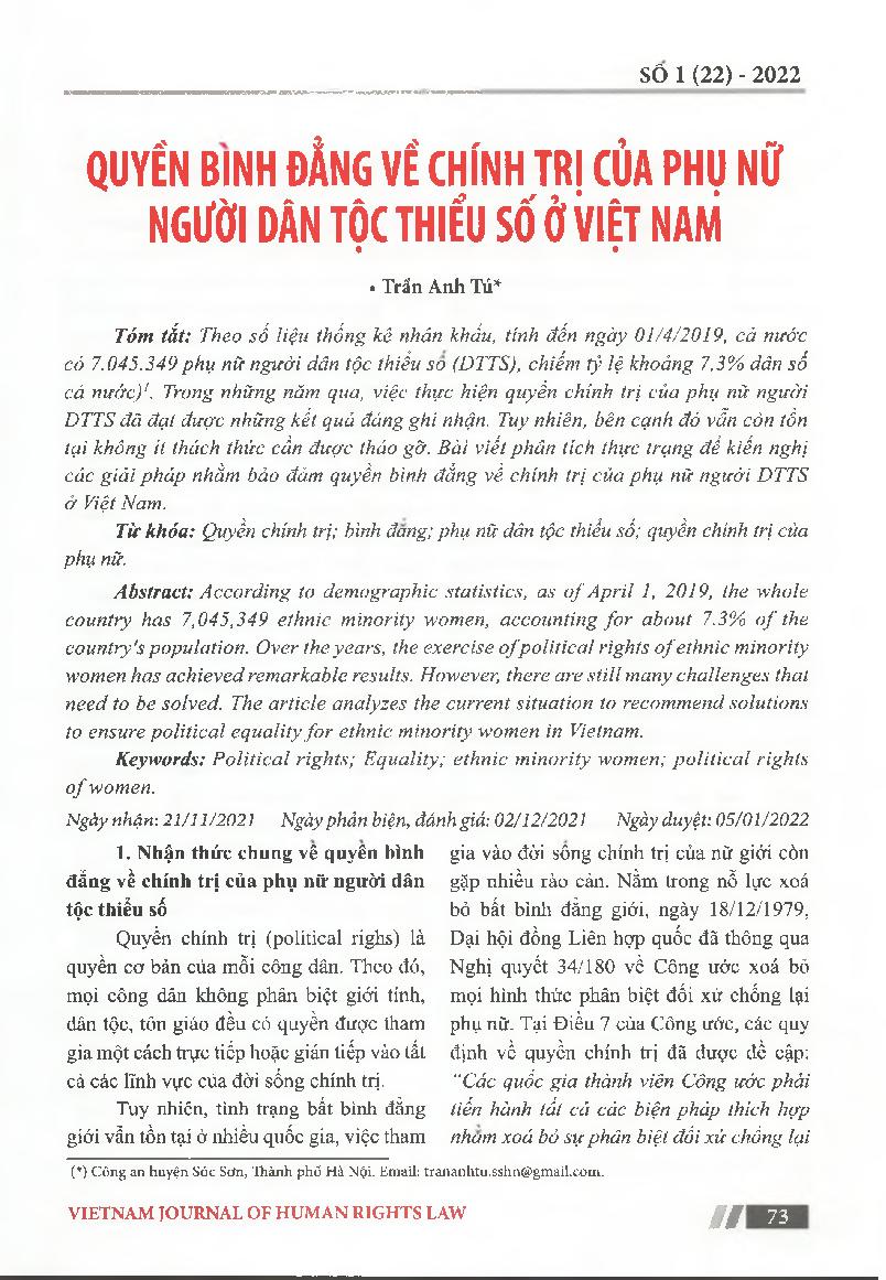 Thực hiện quyền bình đẳng về chính trị của phụ nữ người dân tộc thiểu số ở Việt Nam = Realizing the political equality of ethnic minority women in Vietnam