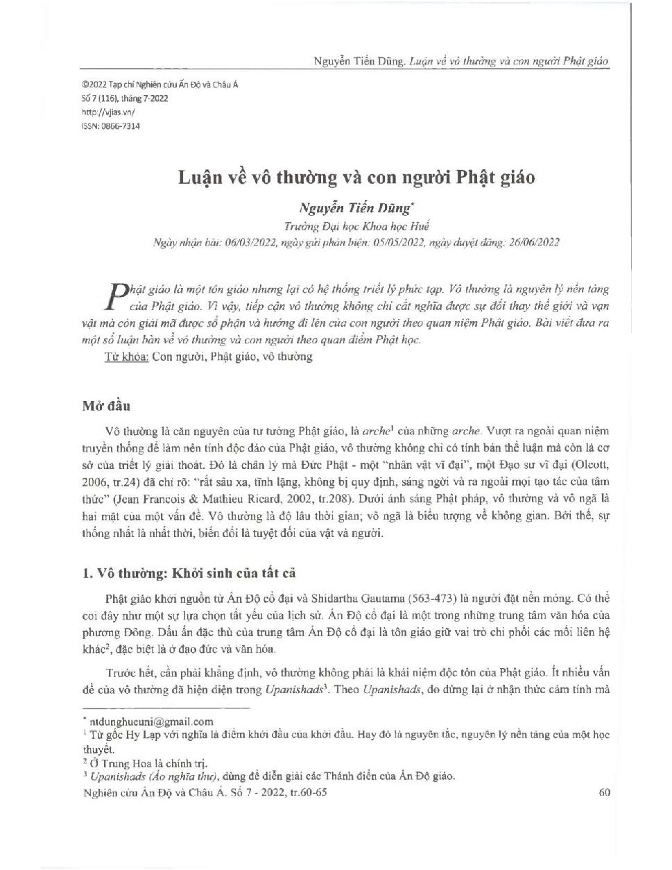 Luận về vô thường và con người Phật giáo = Discussion on impermanence and human beings in Buddhism