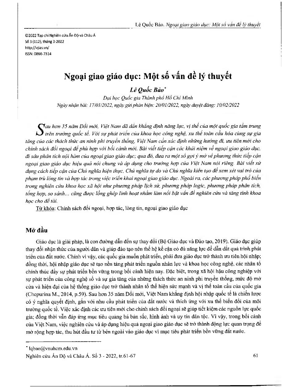 Ngoại giao giáo dục: Một số vấn đề lý thuyết = Education diplomacy: A theoretical overview