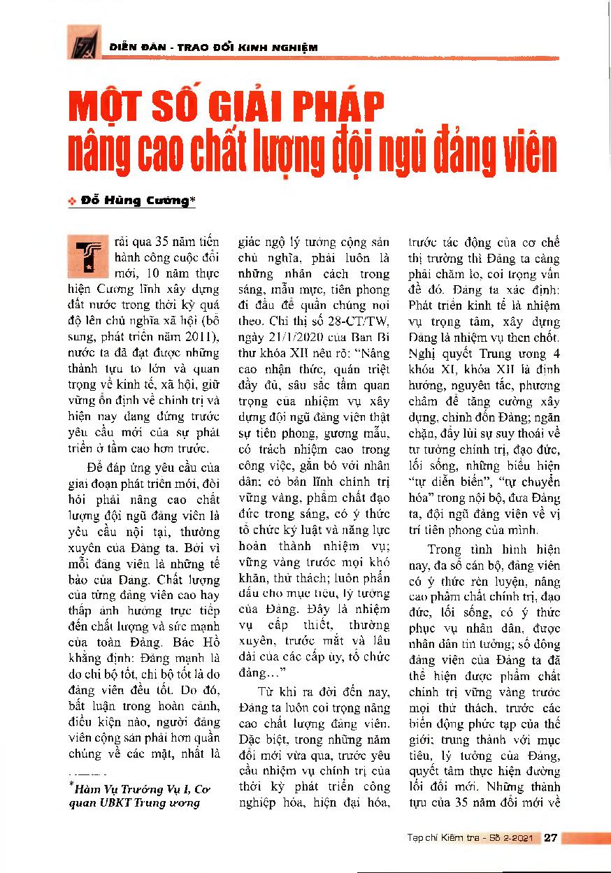 Một số giải pháp nâng cao chất lượng đội ngũ đảng viên