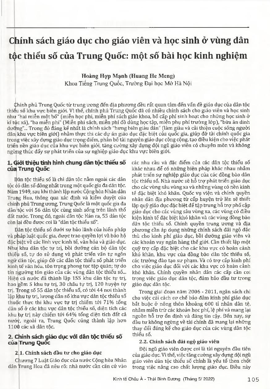 Chính sách giáo dục cho giáo viên và học sinh ở vùng dân tộc thiểu số của Trung Quốc: một số bài học kinh nghiệm