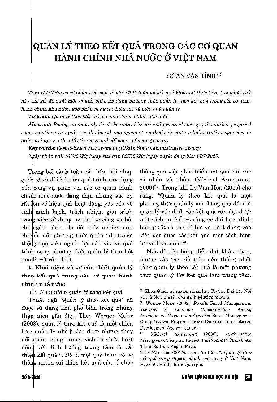 Quản lý theo kết quả trong các cơ quan hành chính nhà nước ở Việt Nam = Result-based management in state administrative agencies in Vietnam