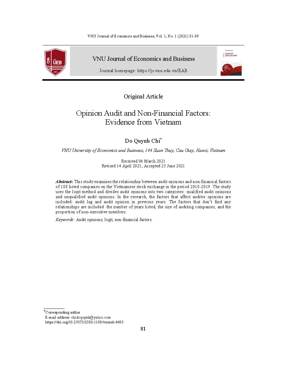 Ý kiến kiểm toán và các nhân tố phi tài chính: Bằng chứng tại Việt Nam