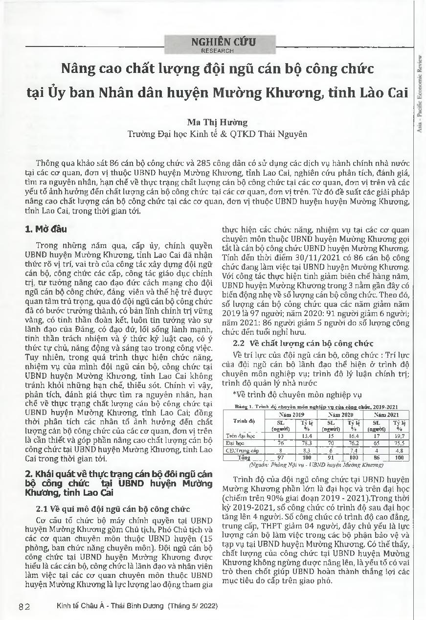 Nâng cao chất lượng đội ngũ cán bộ công chức tại ủy ban Nhân dân huyện Mường Khương, tỉnh Lào Cai