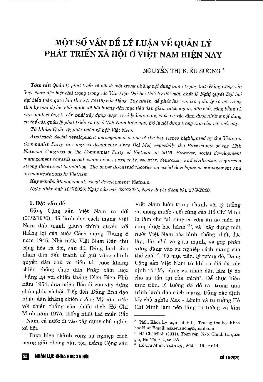 Một số vấn đề lý luận về quản lý phát triển xã hội ở Việt Nam hiện nay = Theories on social development management in Vietnam