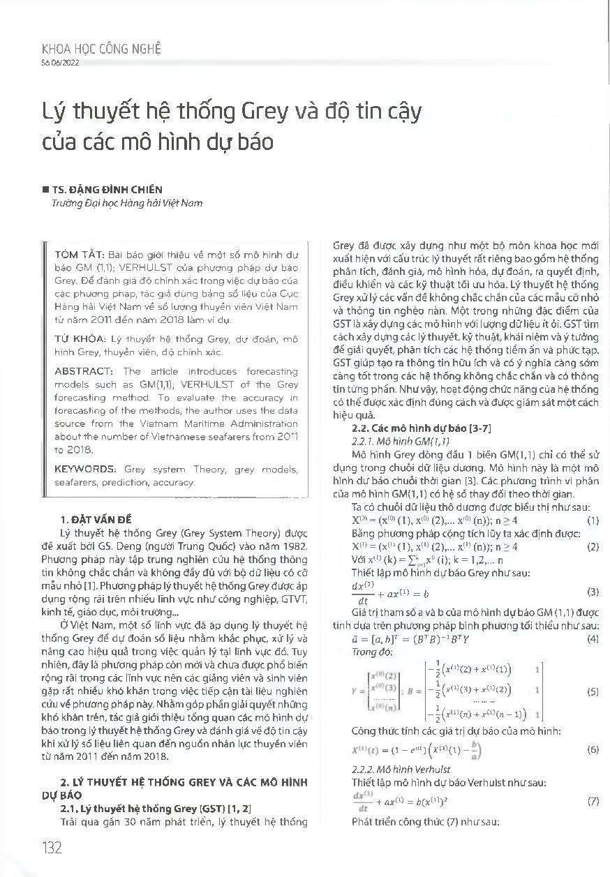 Lý thuyết hệ thống Grey và độ tin cậy của các mô hình dự báo = Gray system theory and the reliability of predictive models