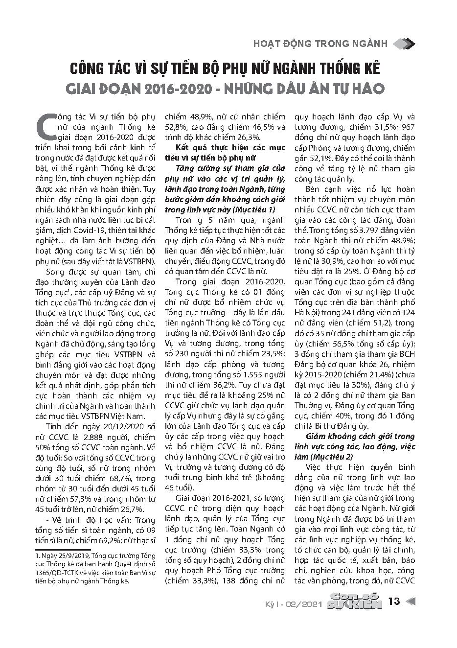 Công tác vì sự tiến bộ phụ nữ ngành thống kê giai đoạn 2016-2020 - những dấu ấn tự hào