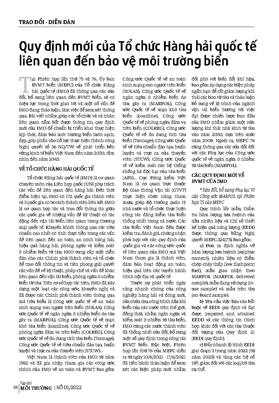 Quy định mới của Tổ chức Hàng hải quốc tế liên quan đến bảo vệ môi trường biển