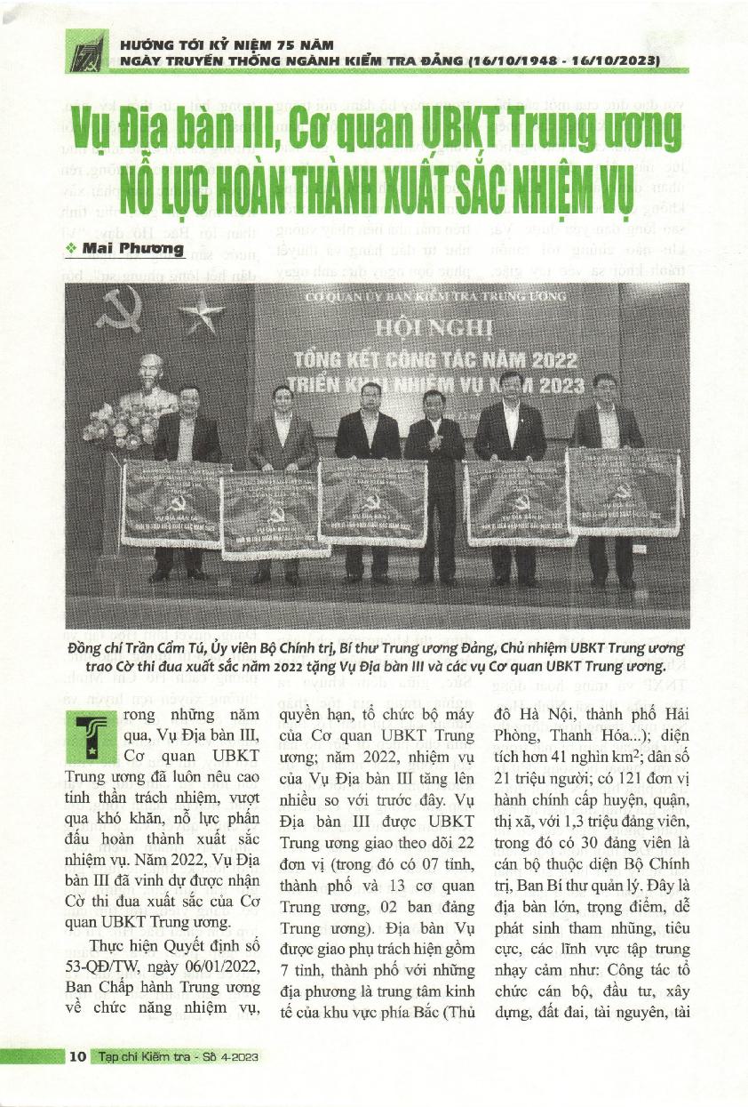 Vụ Địa bàn III, Cơ quan UBKT Trung ương nỗ lực hoàn thành xuất sắc nhiệm vụ