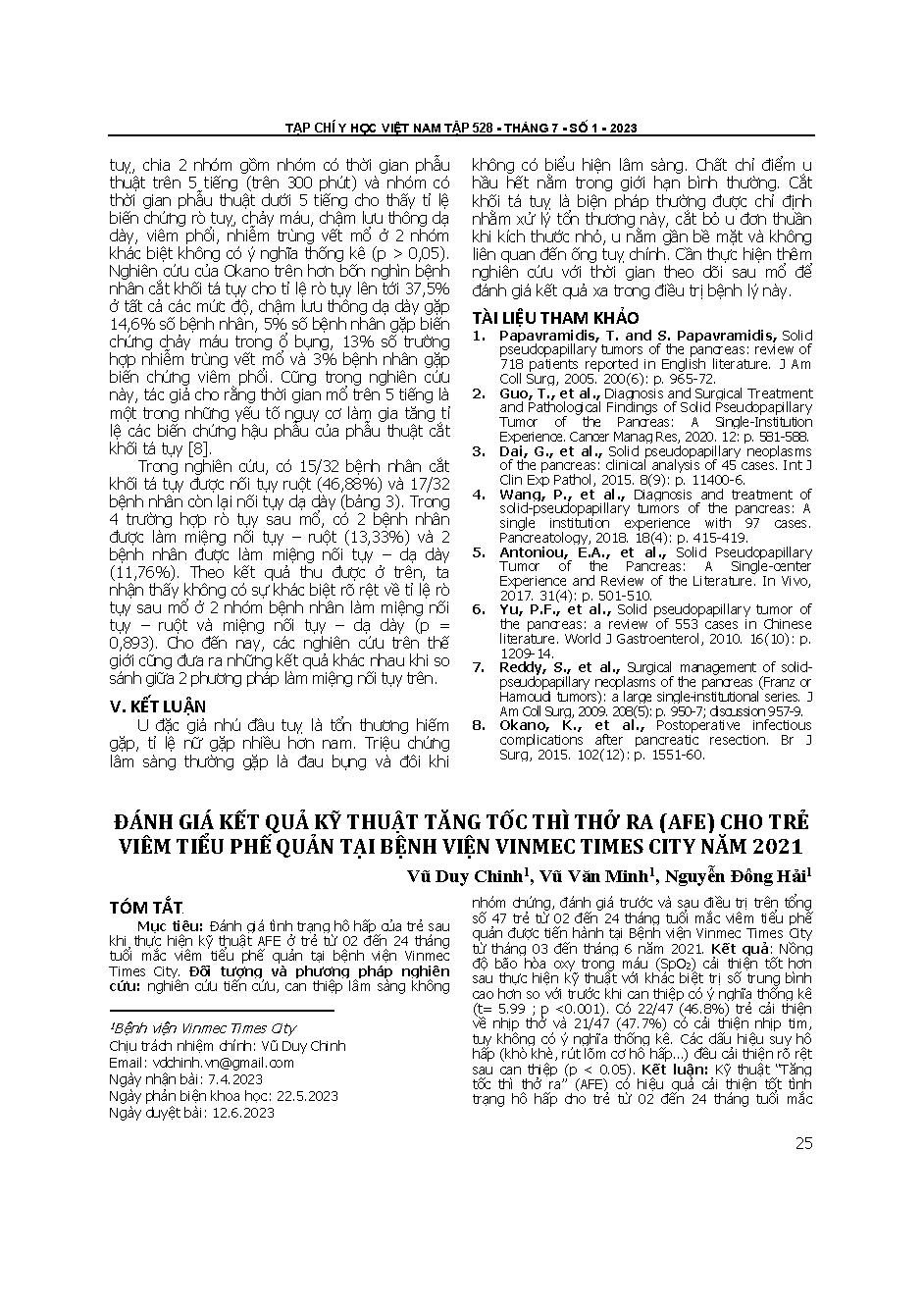 Đánh giá kết quả kỹ thuật tăng tốc thì thở ra (AFE) cho trẻ viêm tiểu phế quản tại Bệnh viện Vinmec Times city năm 2021 = Efficiency of the acceleration du flux expiratoire technique (AFE) for children with bronchiolitis in Vinmec Times city in 2021