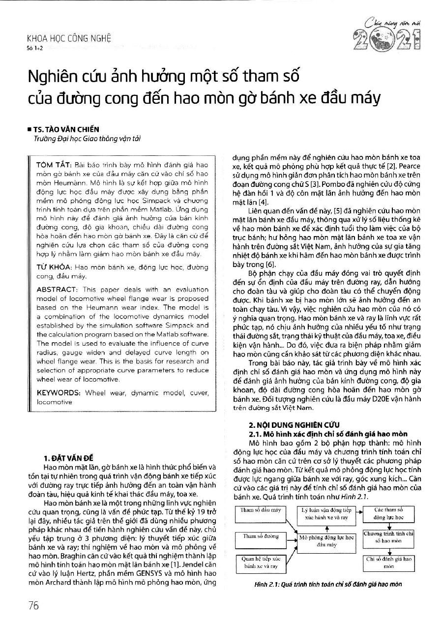 Nghiên cứu ảnh hưởng một số tham số của đường cong đến hao mòn gờ bánh xe đầu máy = The study affects some parameters of the curve on the wheel edge wear of the locomotive