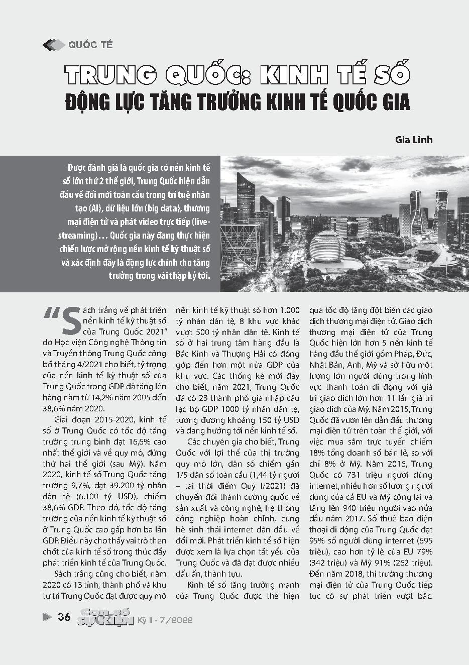 Trung Quốc: Kinh tế số động lực tăng trưởng kinh tế quốc gia = China: The digital economy is the engine of national economic growth