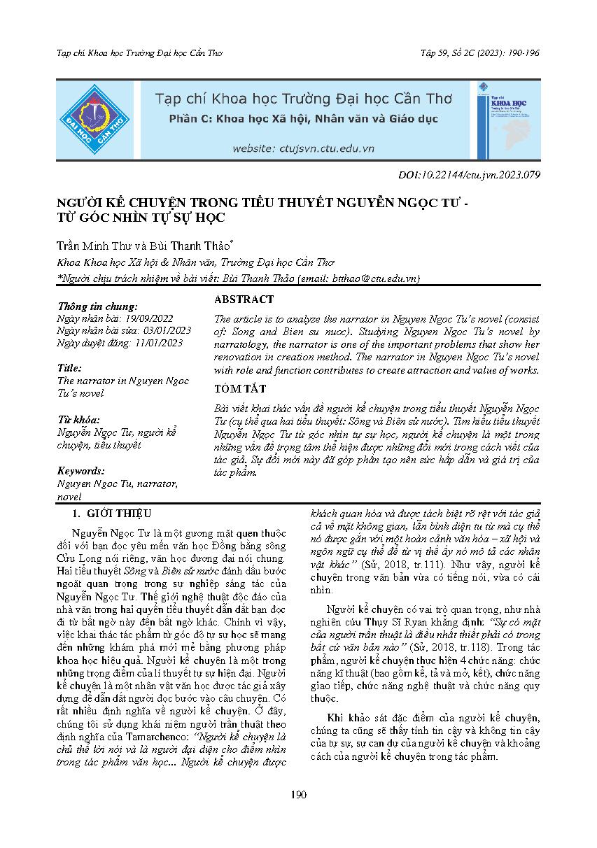 Người kể chuyện trong tiểu thuyết Nguyễn Ngọc Tư - Từ góc nhìn tự sự học = The narrator in Nguyen Ngoc Tu's novel