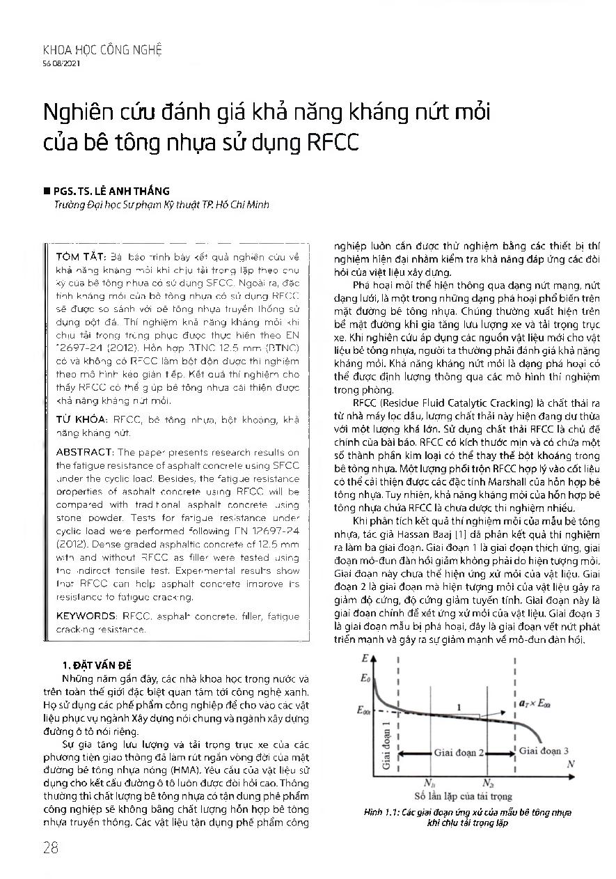 Nghiên cứu đánh giá khả năng kháng nứt mỏi của bê tông nhựa sử dụng RFCC