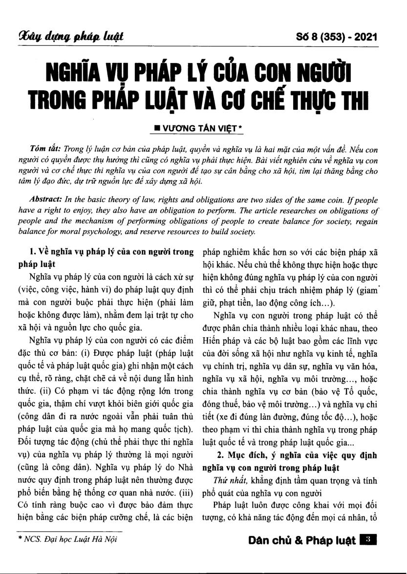 Nghĩa vụ pháp lý của con người trong pháp luật và cơ chế thực thi