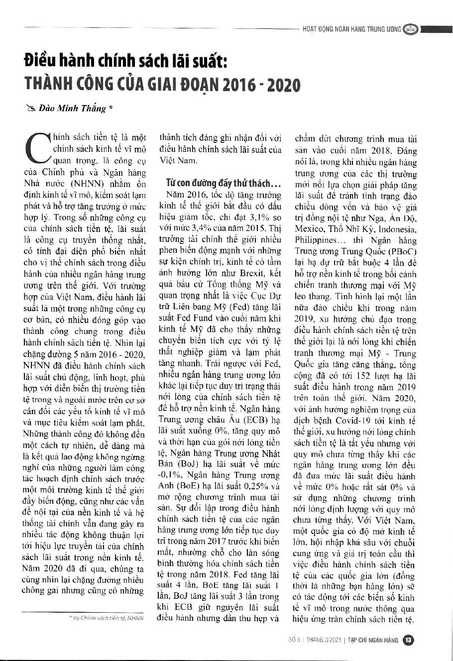 Điều hành chính sách lãi suất: Thành công của giai đoạn 2016 - 2020