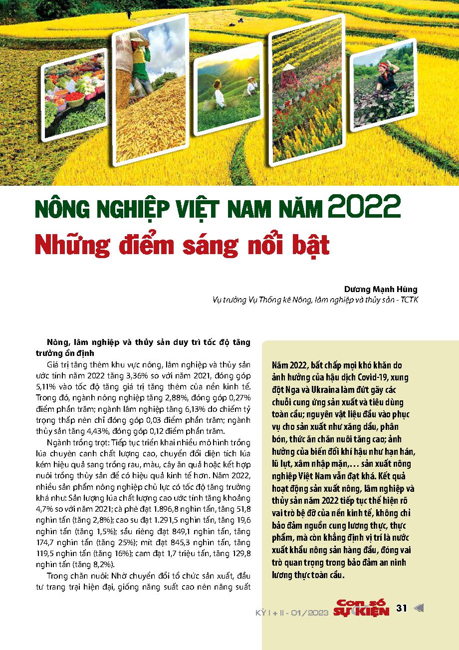 Nông nghiệp Việt Nam năm 2022: Những điểm sáng nổi bật