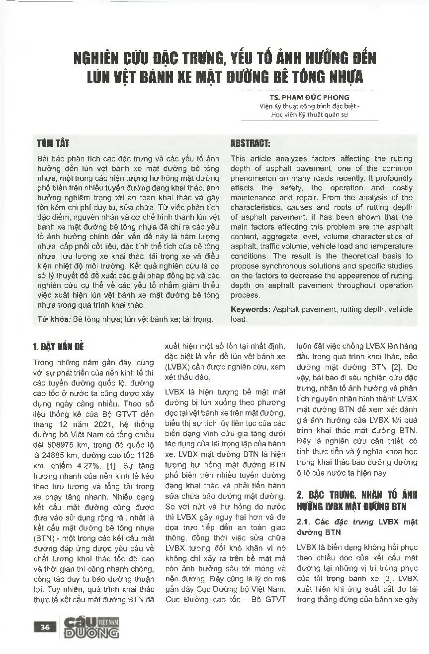 Nghiên cứu đặc trưng, yếu tố ảnh hưởng đến lún vệt bánh xe mặt đường bê tông nhựa