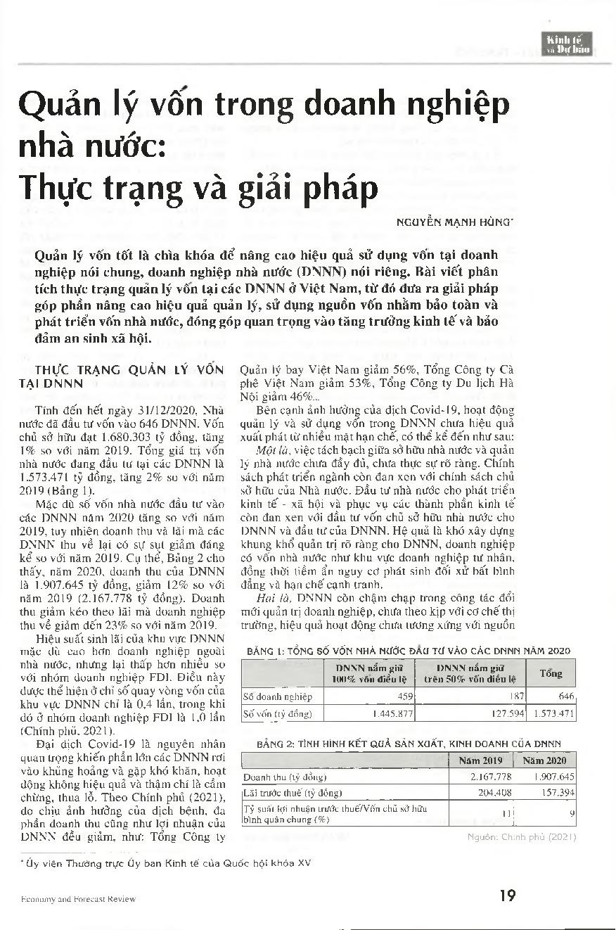 Quản lý vốn trong doanh nghiệp nhà nước: Thực trạng và giải pháp