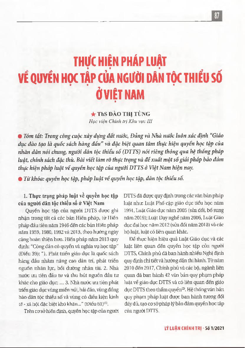 Thực hiện pháp luật vẽ quyền học tập của người dân tộc thiểu số ở Việt Nam