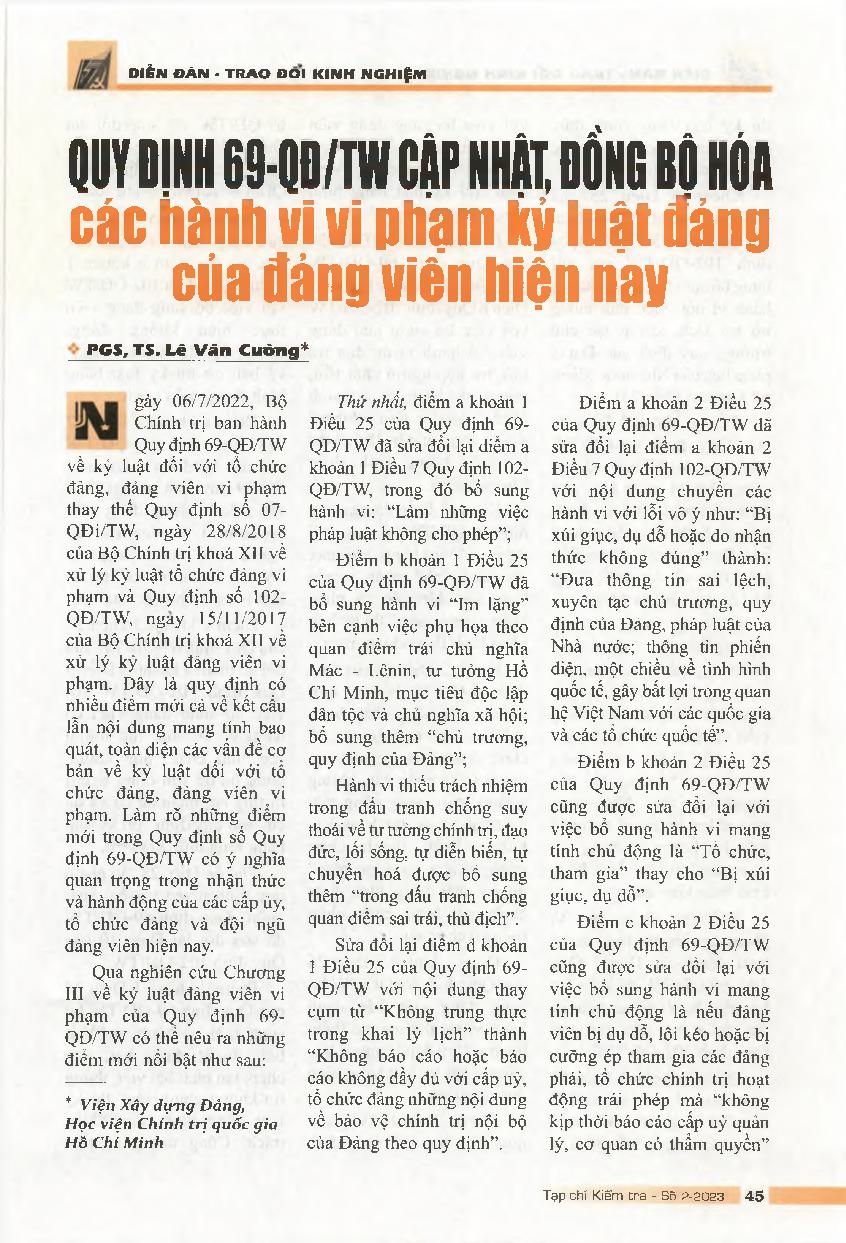 Quy định 69-QD/TW cập nhật, đổng bộ hóa các hành vi vi phạm kỷ luật đảng của đảng viên hiện nay