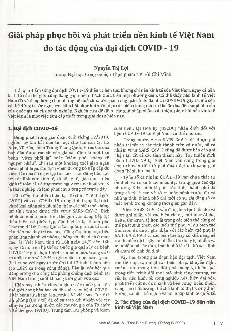Giải pháp phục hồi và phát triển nền kinh tế Việt Nam do tác động của đại dịch COVID -19