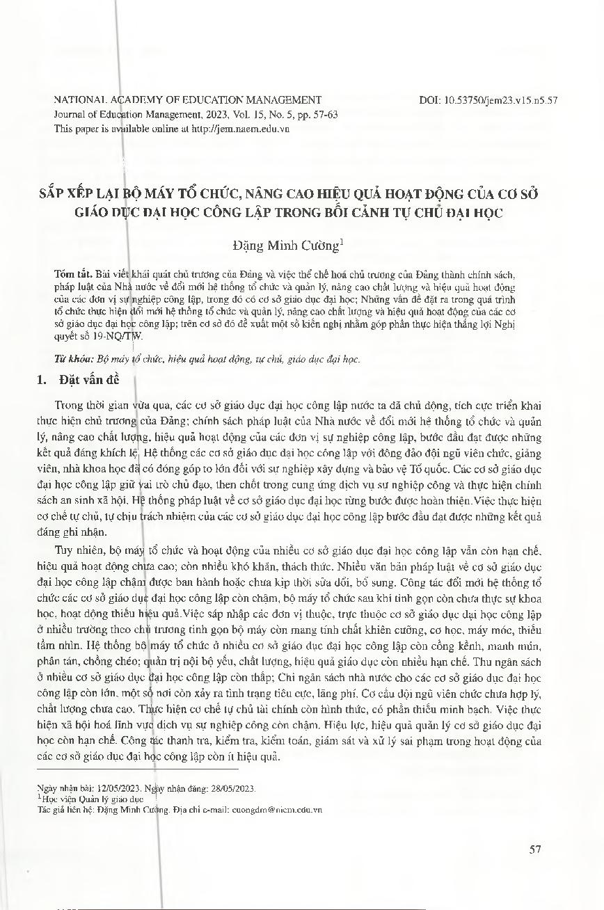 Sắp xếp lại bộ máy tổ chức, nâng cao hiệu quả hoạt động của cơ sở giáo dục đại học công lập trong bối cảnh tự chủ đại học