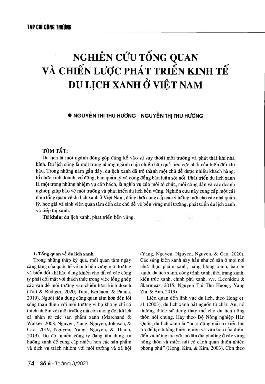 Nghiên cứu tổng quan và chiến lược phát triển kinh tế du lịch xanh ở Việt Nam = An overview on the green tourism and green tourism development strategies in Vietnam